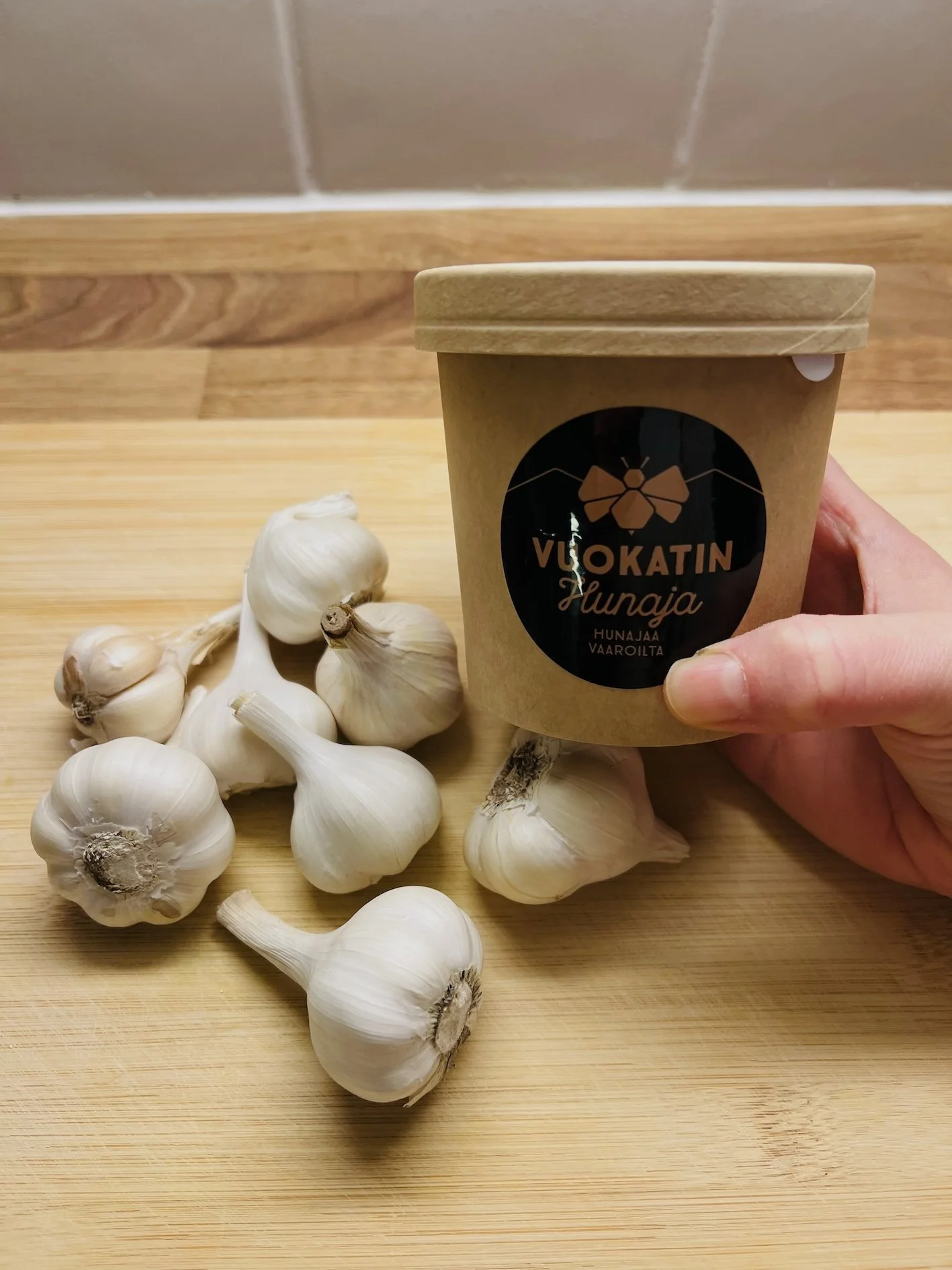 Valitse mielellään lähihunajaa ja kotimaista valkosipulia, jos mahdollista. Löysin kotimaista luomuvalkosipulia Prismasta.